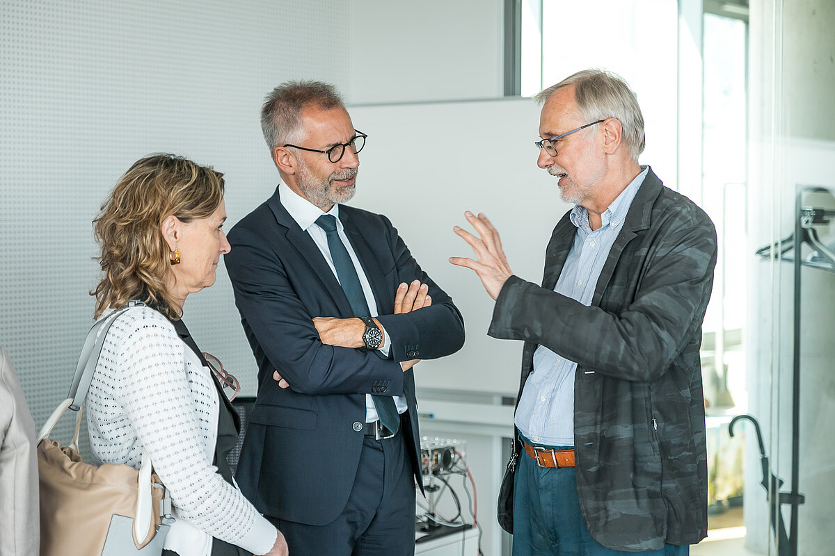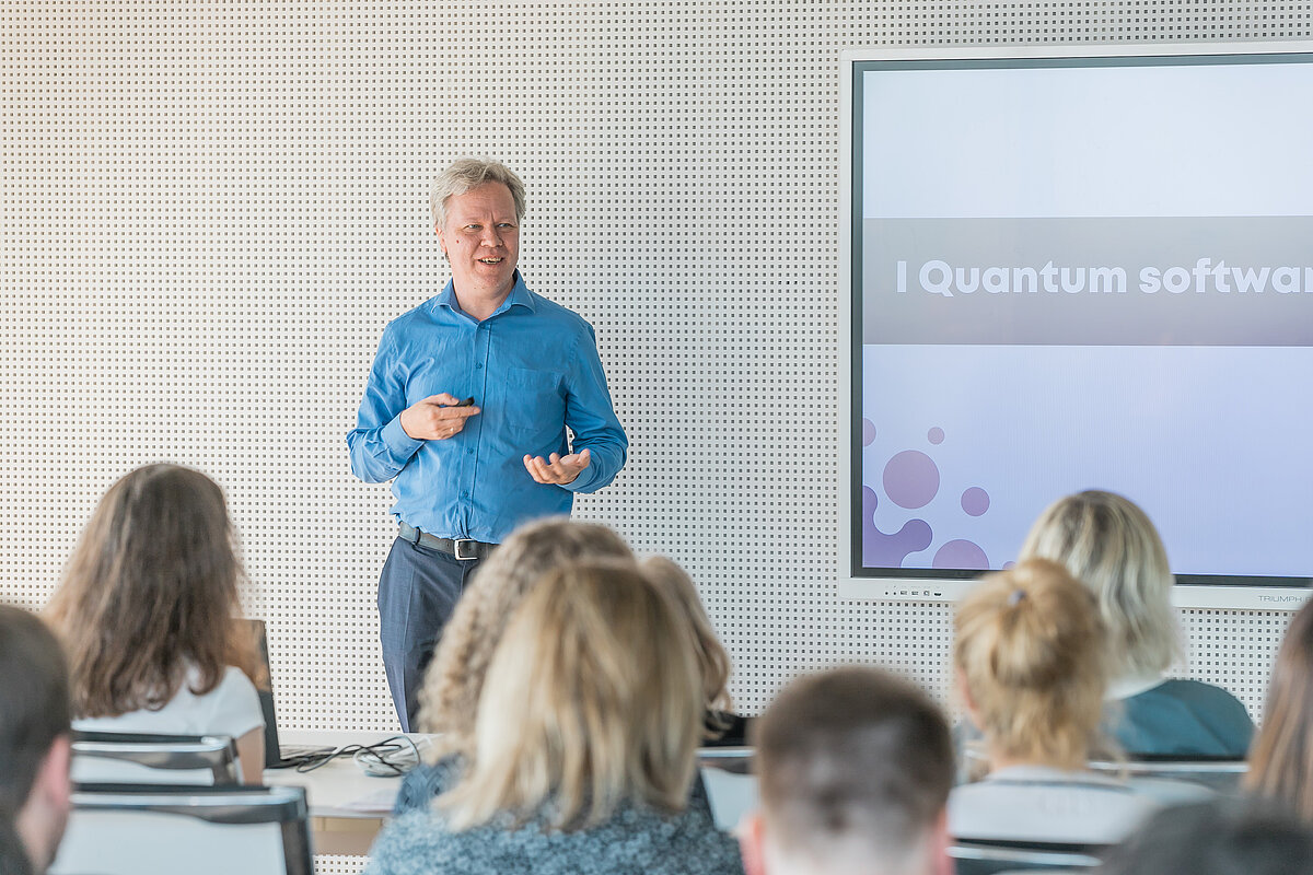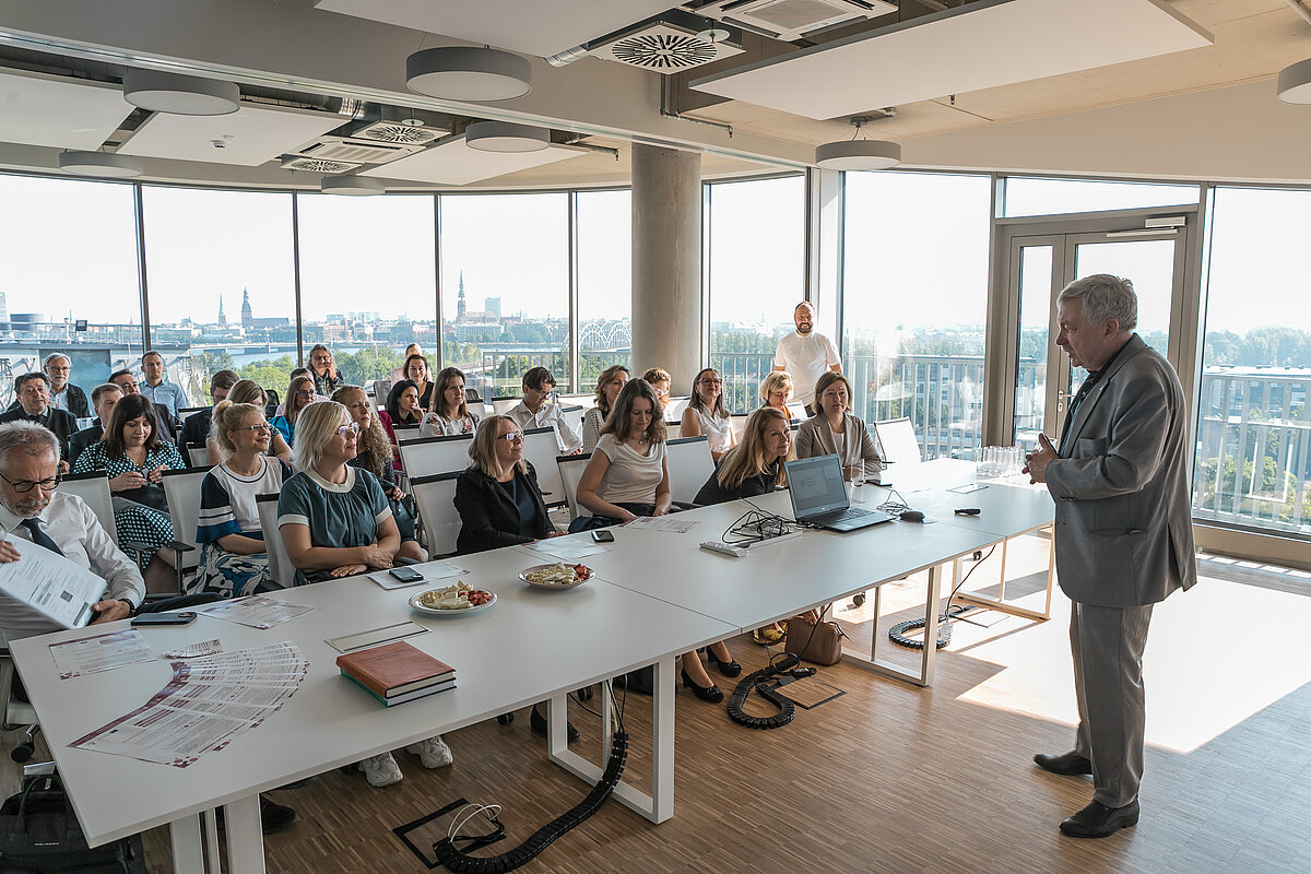 The Rector of the University of Latvia, Professor Indriķis Muižnieks, told the guests about studies and research at the University of Latvia and the development of the Academic Center while Professor Vyacheslavs Kashcheyevs gave a comprehensive presentation on the working principles and development of quantum technology as well as about the main directions of activities of the Latvian Quantum Initiative – the research of the quantum software and algorithms, quantum devices and quantum communications.