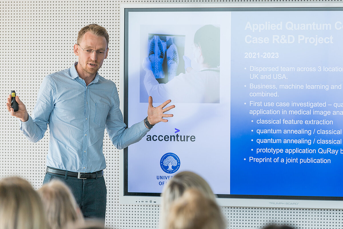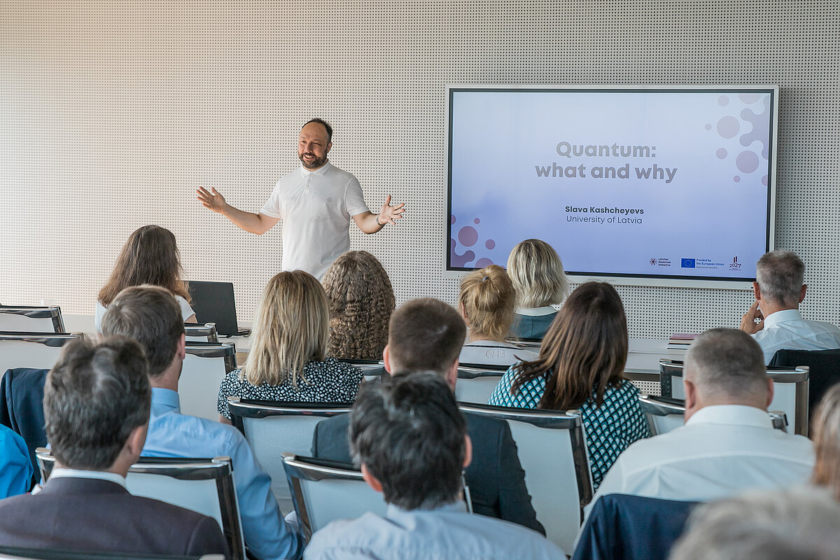 Professor Andris Ambainis talked in detail about the principles of quantum computing and research in the field of quantum algorithms, carried out by the researchers of the Center for Quantum Computer Science of the UL, which has gained worldwide recognition, while researcher Mārtiņš Kālis presented the results and demonstrated the application of quantum algorithm within the joint research of the UL and the company "Accenture" on the use of quantum algorithms in the in radiology image analysis. Researcher Reinis Lazda presented the research conducted at the UL Laser Center and demonstrated the magnetometer.